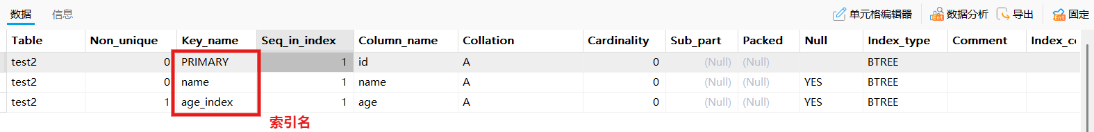 show index from test2;