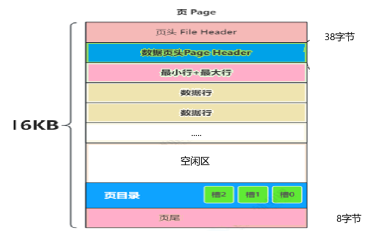 通过以上页的基本介绍,可以了解到页有页头 + 页尾 + 数据页头 + (最大行 + 最小行)+ 数据行 +页目录组成,页的大小为16kb,为了简化计算,可以忽略页头和页尾的大小(38 + 8 = 46字节),其它行以 id + record_next构成计算,主键ID为8字节,record_next为6个字节,一行数据大小为14个字节。