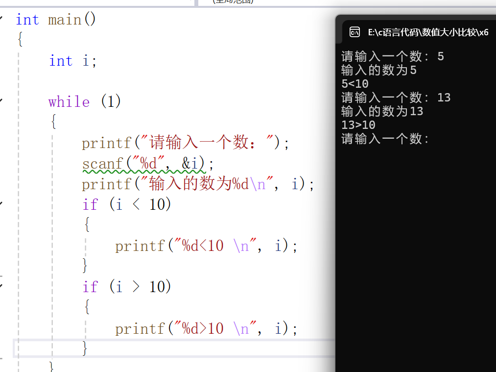 printf("%d>10 \n", i);