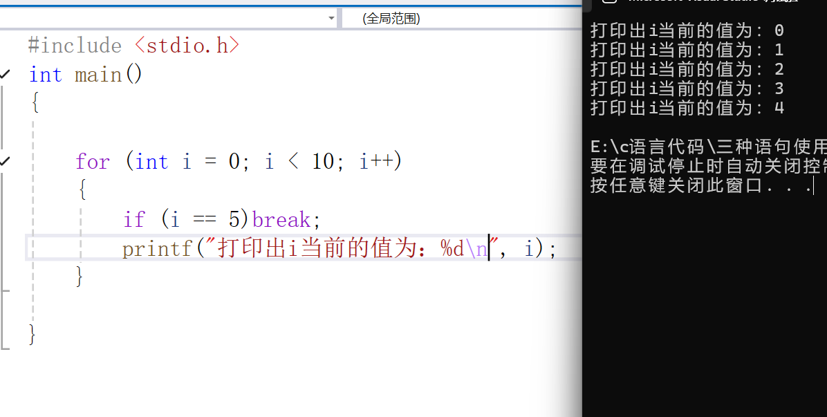 if (i == 5) break; // 当i为5时跳出循环
