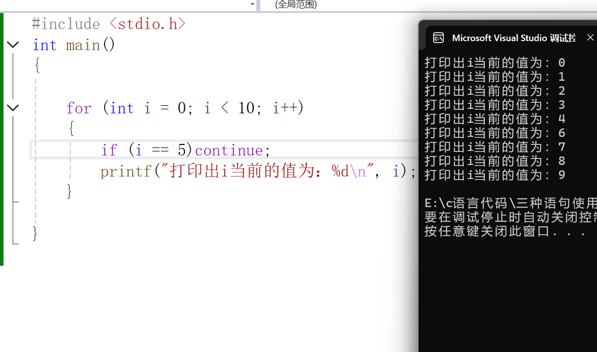 printf("%d ", i); // 输出0 1 2 3 4
