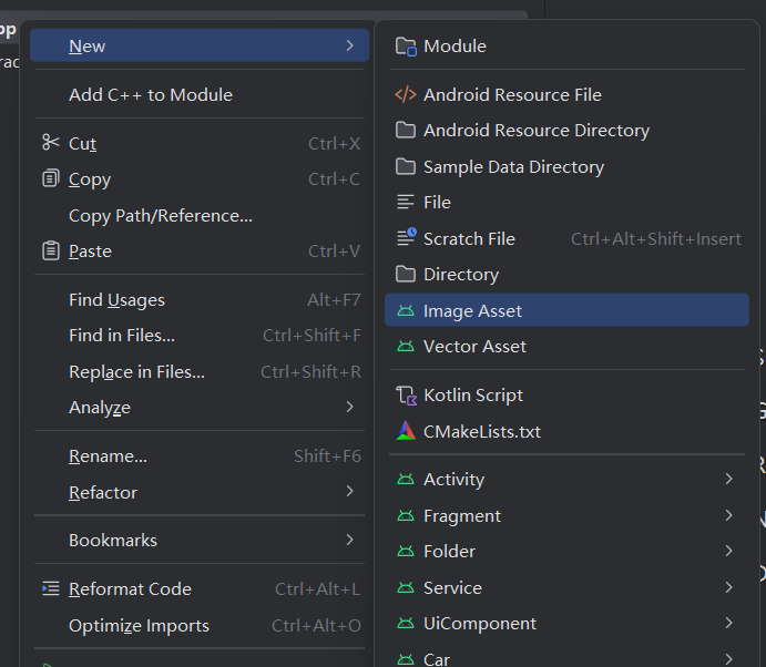 - Android Studio:在左侧 Project(建议切到 Android 视图)→ 右键 app 或 app/src/main/res