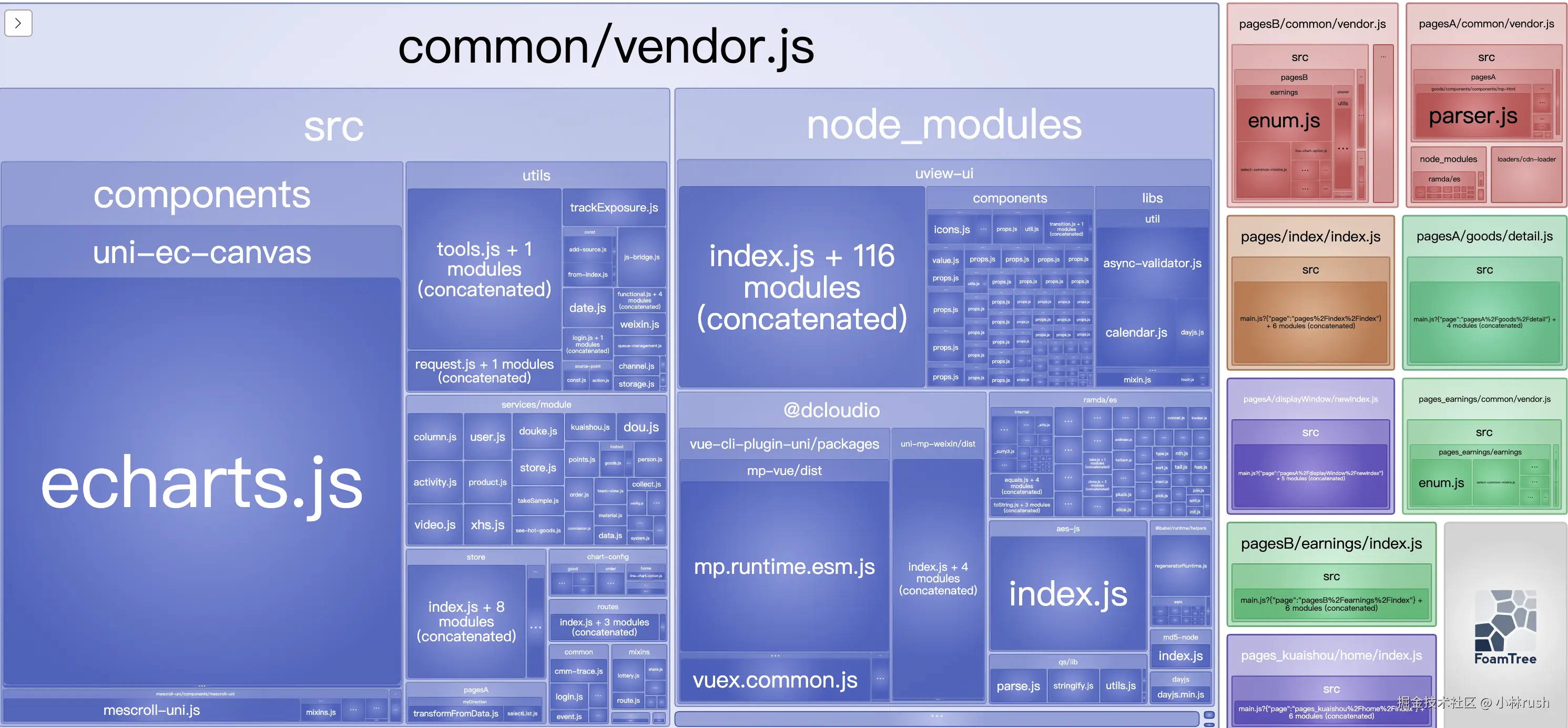 通过 Webpack 构建分析,我们发现 Vendor.js 中一个体积庞大的组件------ECharts 图表------占据了大量空间,即便它已经是按需构建的产物。