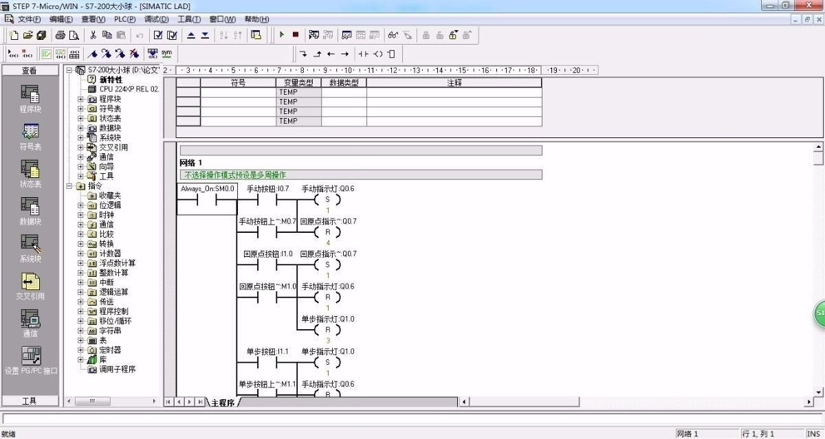 这里就是简单判断输入点I0.0是否有信号输入,有信号输入则表示检测到小球。