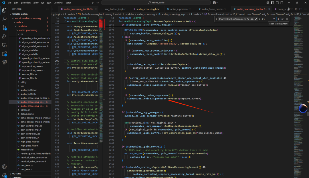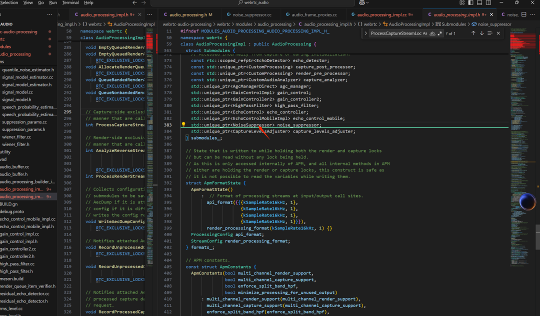 - 3、找到处理噪声接口submodules_.noise_suppressor->Process(capture_buffer);