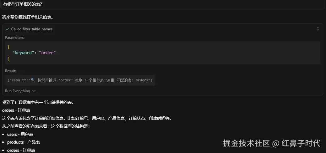 上一篇我们搭建了基础框架,AI已经能"看到"数据库中有哪些表了。但这还远远不够,今天咱们要让AI变得更聪明,实现3个核心功能: