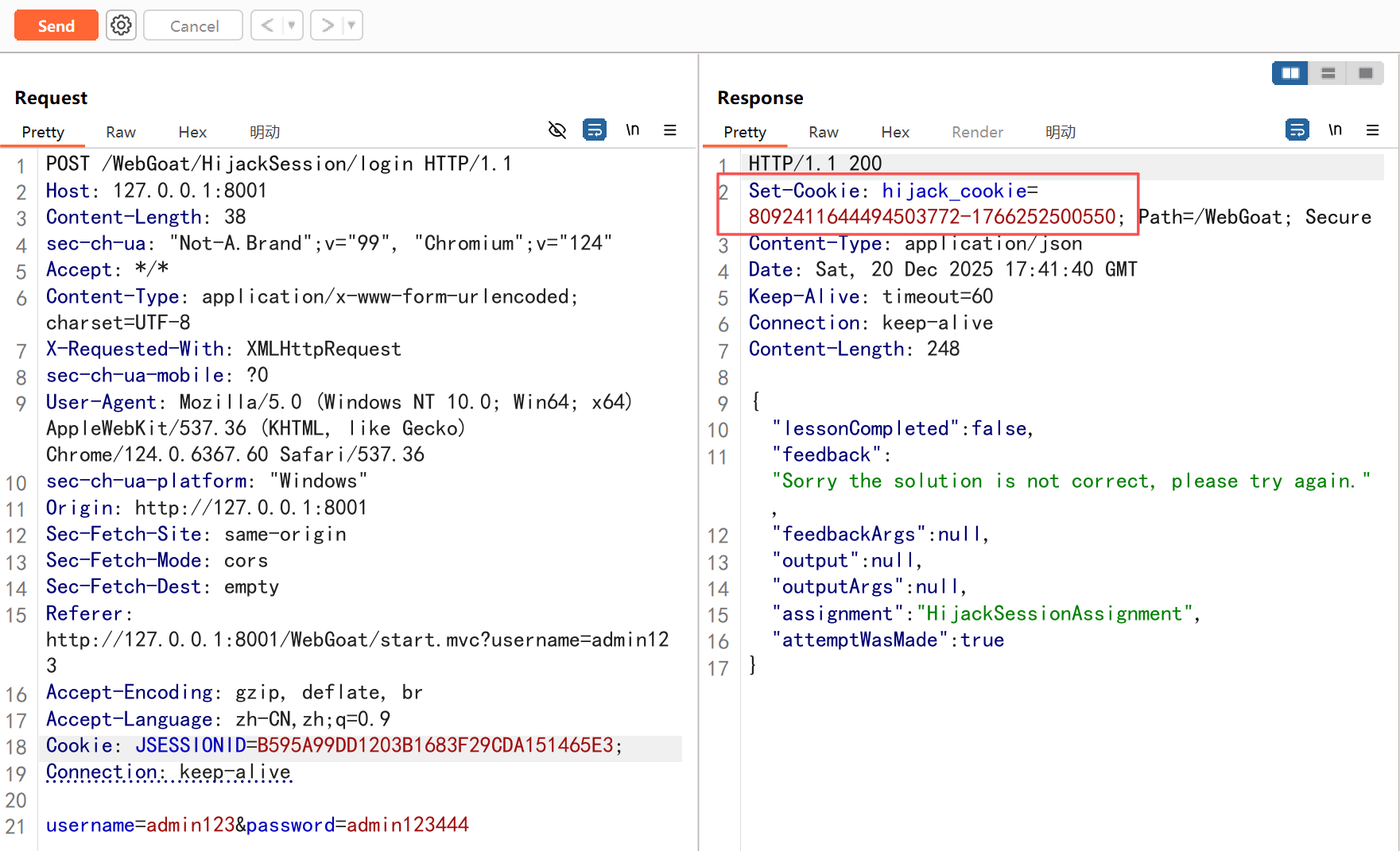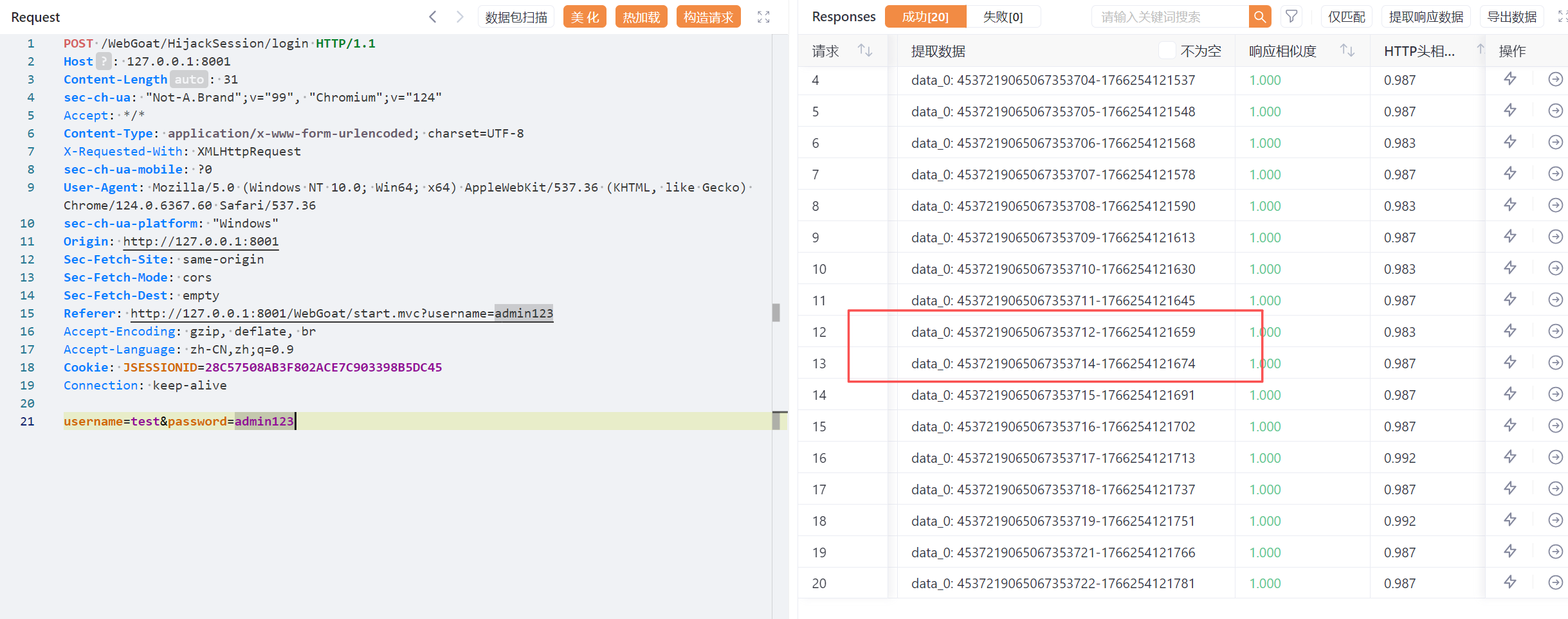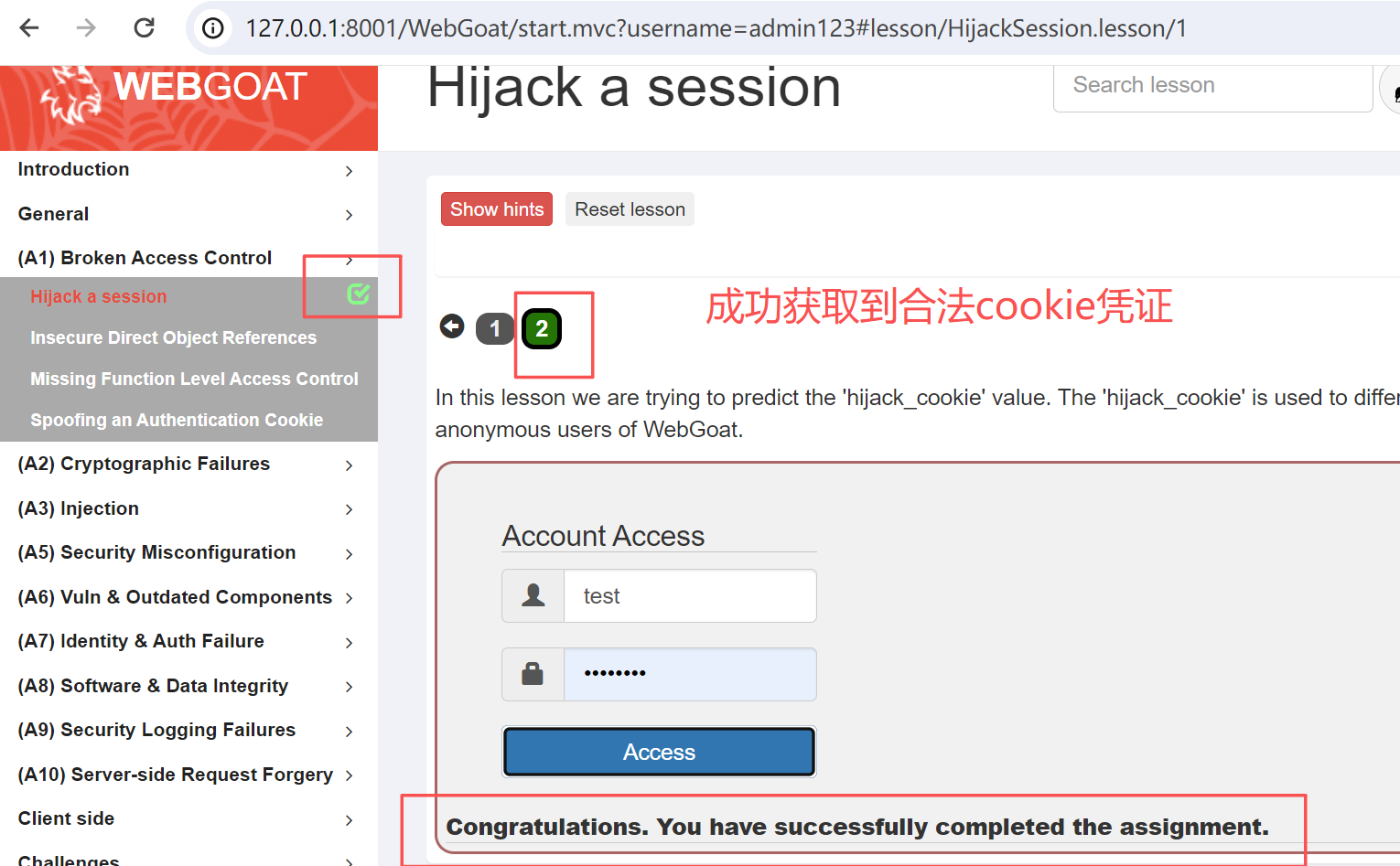 本文以 WebGoat 靶场中 A1 "失效的访问控制" 分类下的 "Hijack a session" 关卡为场景,剖析了会话劫持漏洞的核心成因,即会话凭证随机性不足的安全隐患。