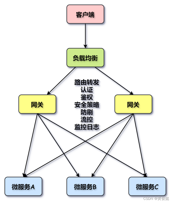单是微服务网关一般不会作为系统最前端的入口,在微服务网关前面还有一层负载均衡。