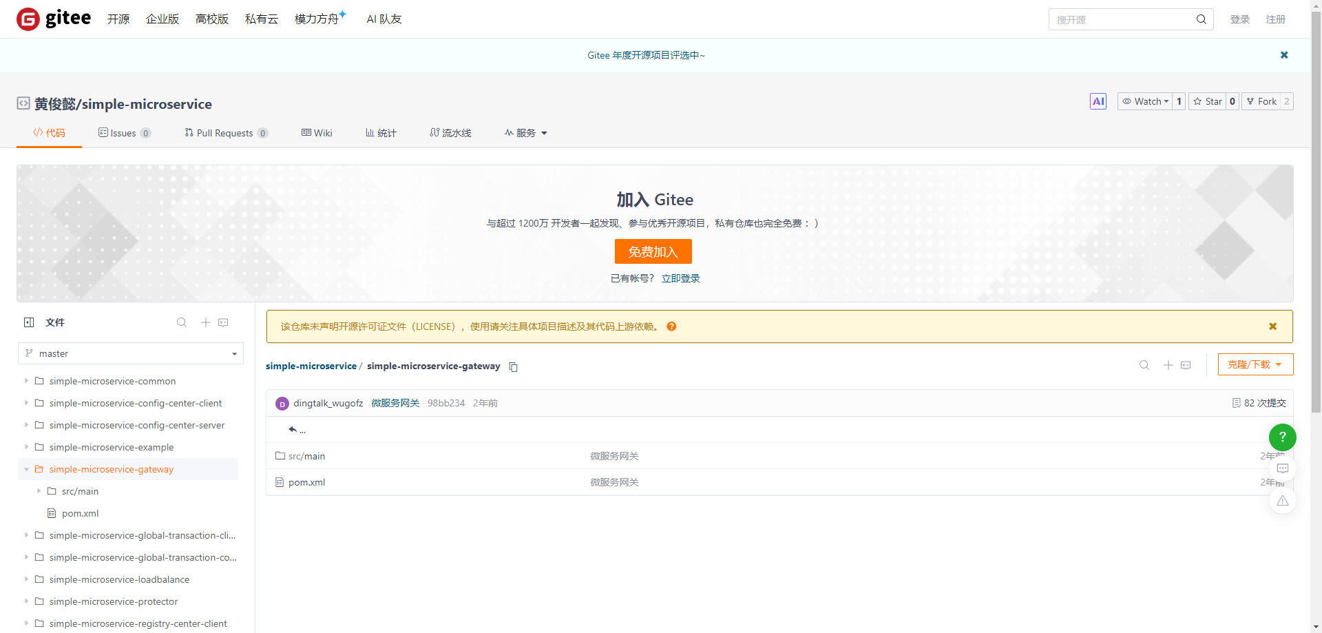 gitee仓库地址 :simple-microservice-gateway