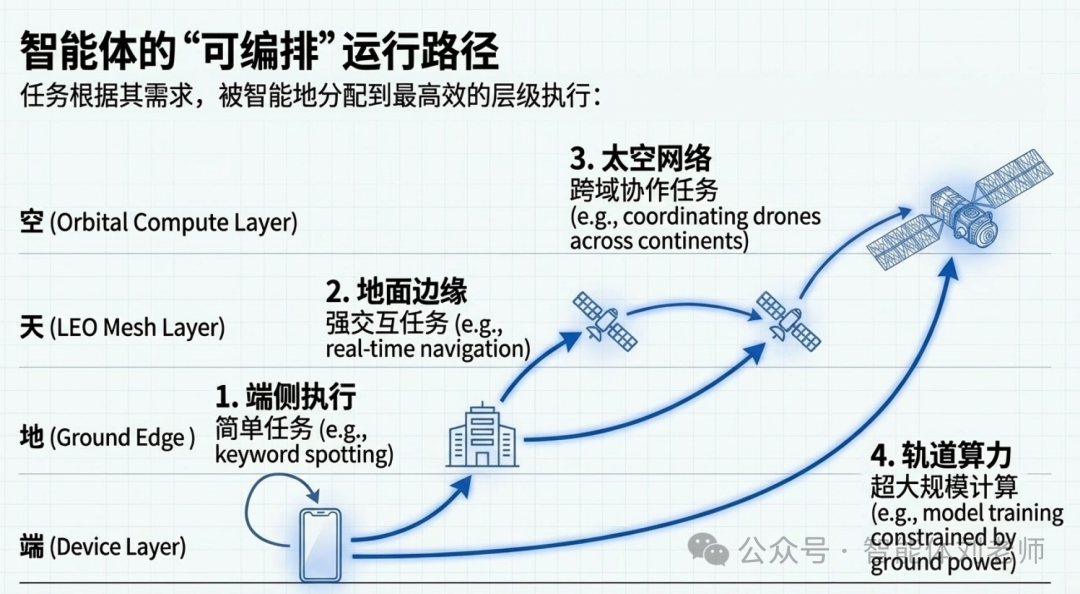 空(Space):未来在轨算力成为"离用户更近的云",负责部分推理、缓存与路由决策。