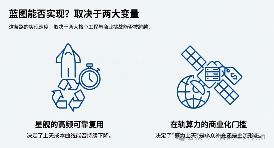 在轨算力是否能在可靠性、维护、热控与成本上跨过商业化门槛(决定"算力上天"是小众补充还是主流形态)。