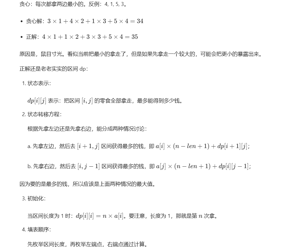 // 2. 先拿右边j,收益=a[j]*cnt + 剩下[i,j-1]的最大收益