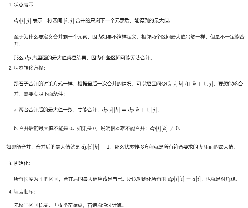 int f[N][N]; // f[i][j]:[i,j]合并成一个数的最大值(0表示合不成)