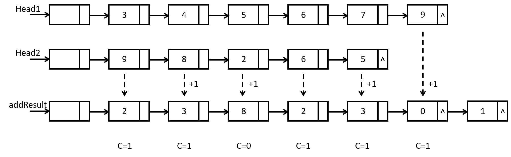 carry != 0),还需要再构建一个新的节点存储进位值。