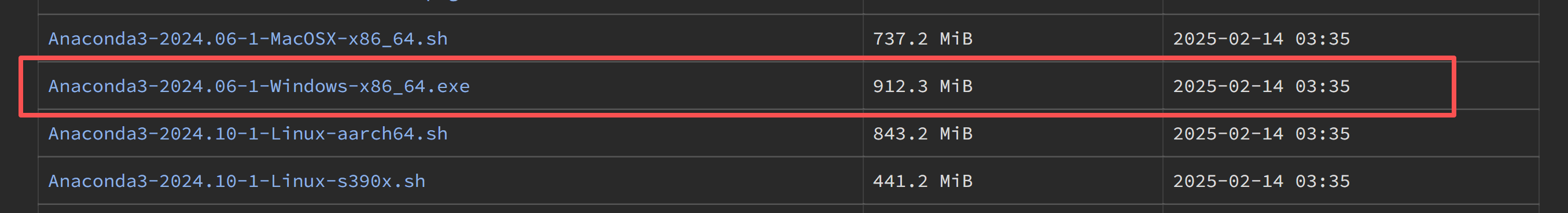 - 清华镜像源 https://mirrors.tuna.tsinghua.edu.cn/anaconda/archive/