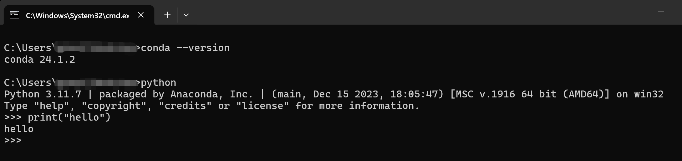 如果显示版本号则成功安装。可以输入命令进入Anaconda自带的Python环境。