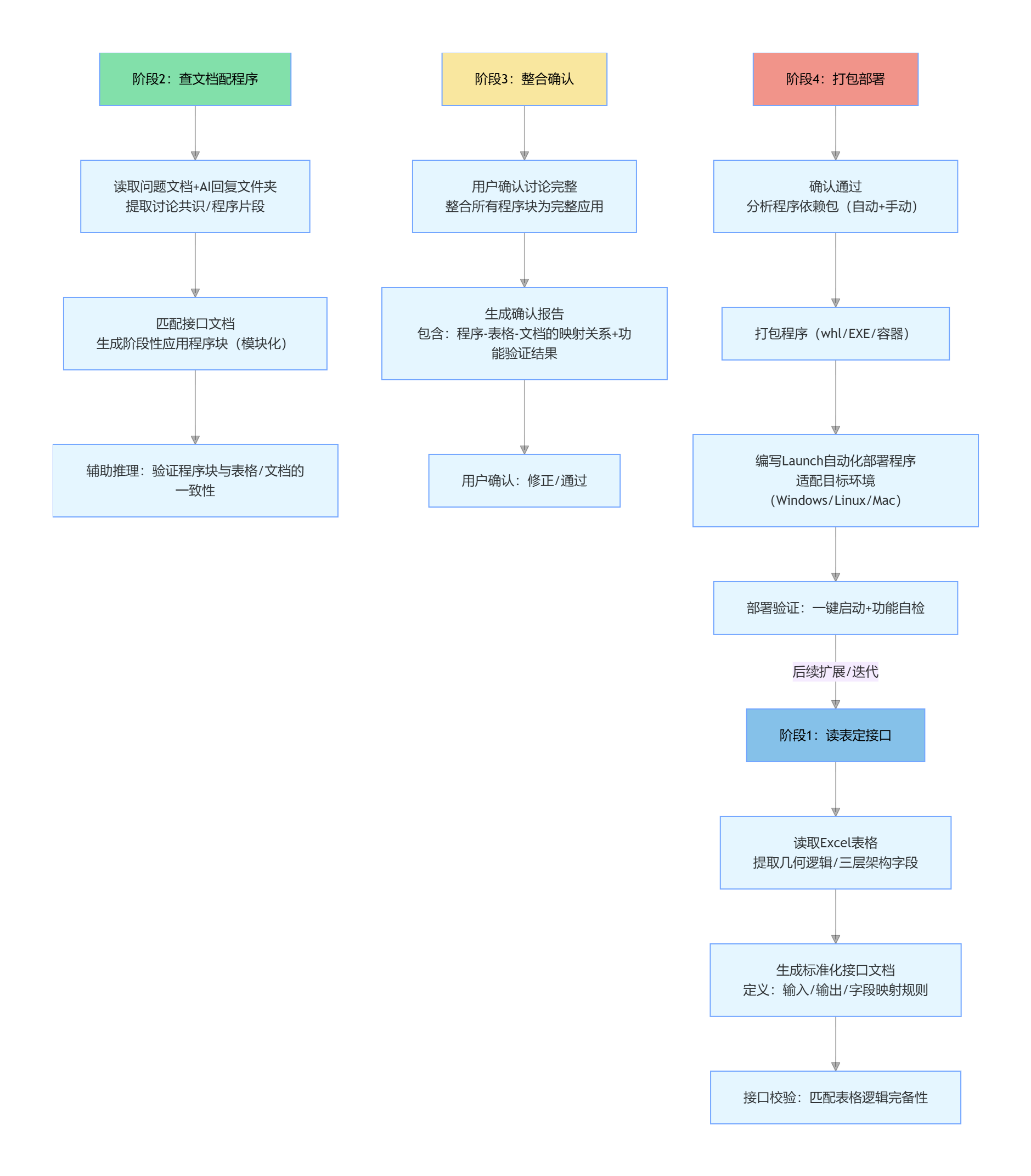 简单来说,你的逻辑是:以 "问题文档" 定需求 → 以 "结构化表格" 做落地承接 → 以 "AI 产出的工具 / 程序" 做实现支撑,最终形成完整、可落地的整体设计最初版本。