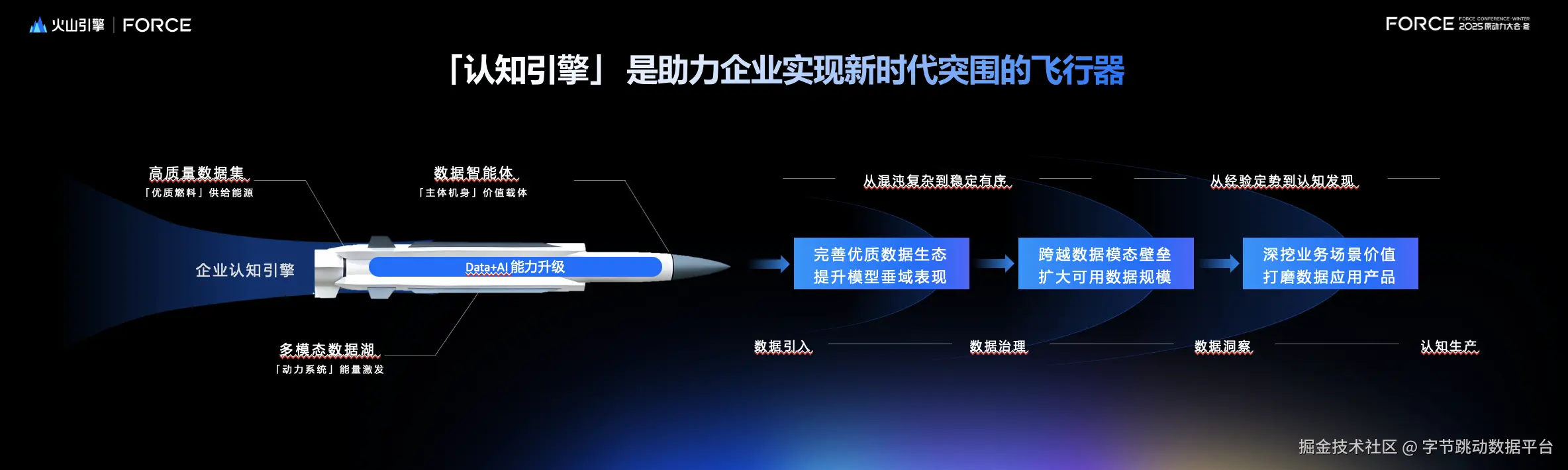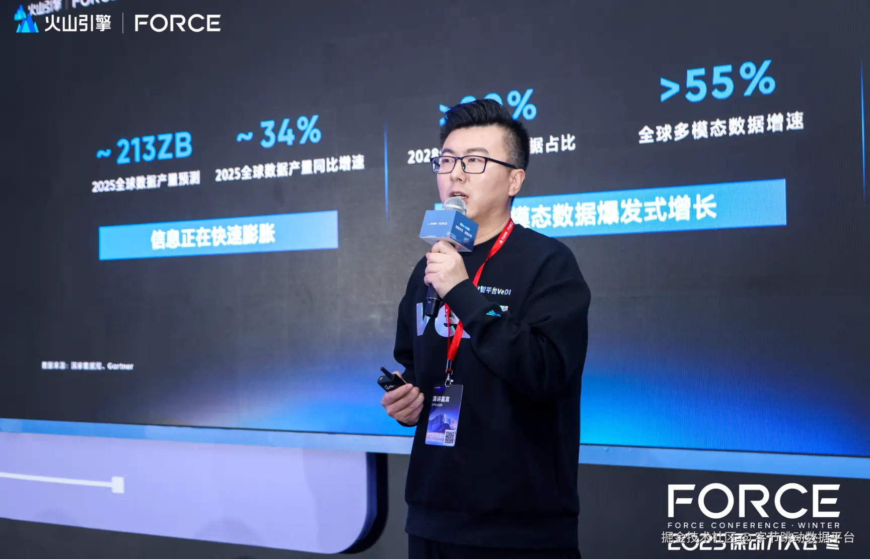12月18日,2025火山引擎Force原动力大会·冬在上海举办,在当天下午的Data +AI论坛上,火山引擎数智平台提出企业数智化从"数据驱动"迈向"认知驱动"新阶段,并推出了通过多模态数据湖、数据智能体服务和高质量数据集在内的打造"企业认知引擎"的「Data +AI」方案服务。