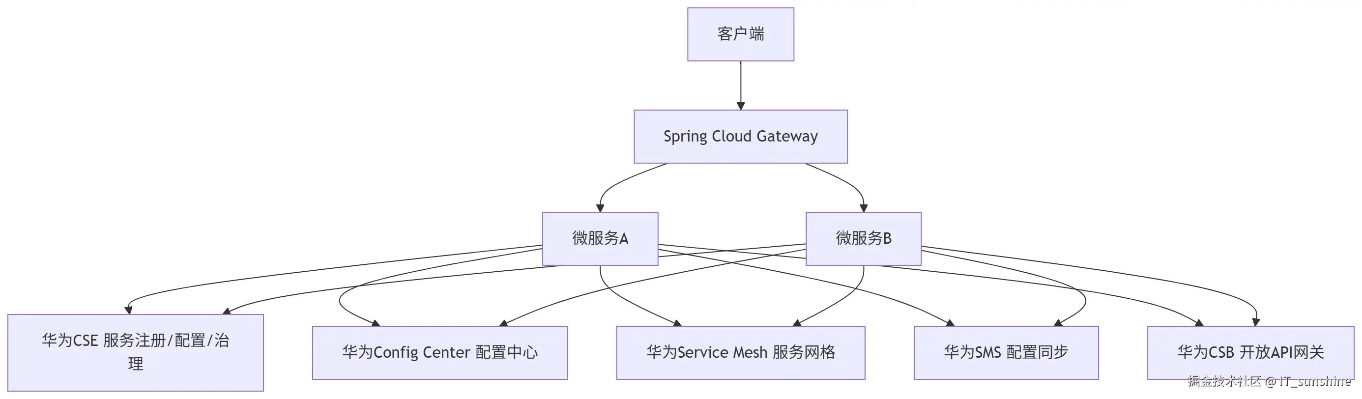 | Spring Cloud Huawei | 深度适配华为云、混合云支持好 | 华为云用户,政企/国产化项目 | 生态封闭性较强,社区活跃度一般 |