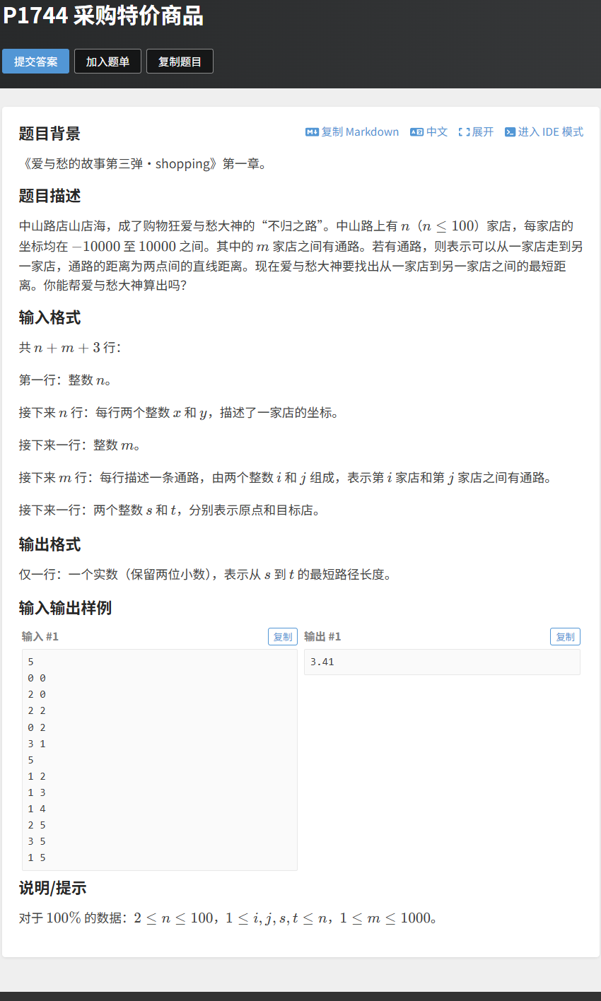 [题目链接:P1744 采购特价商品](#题目链接:P1744 采购特价商品)