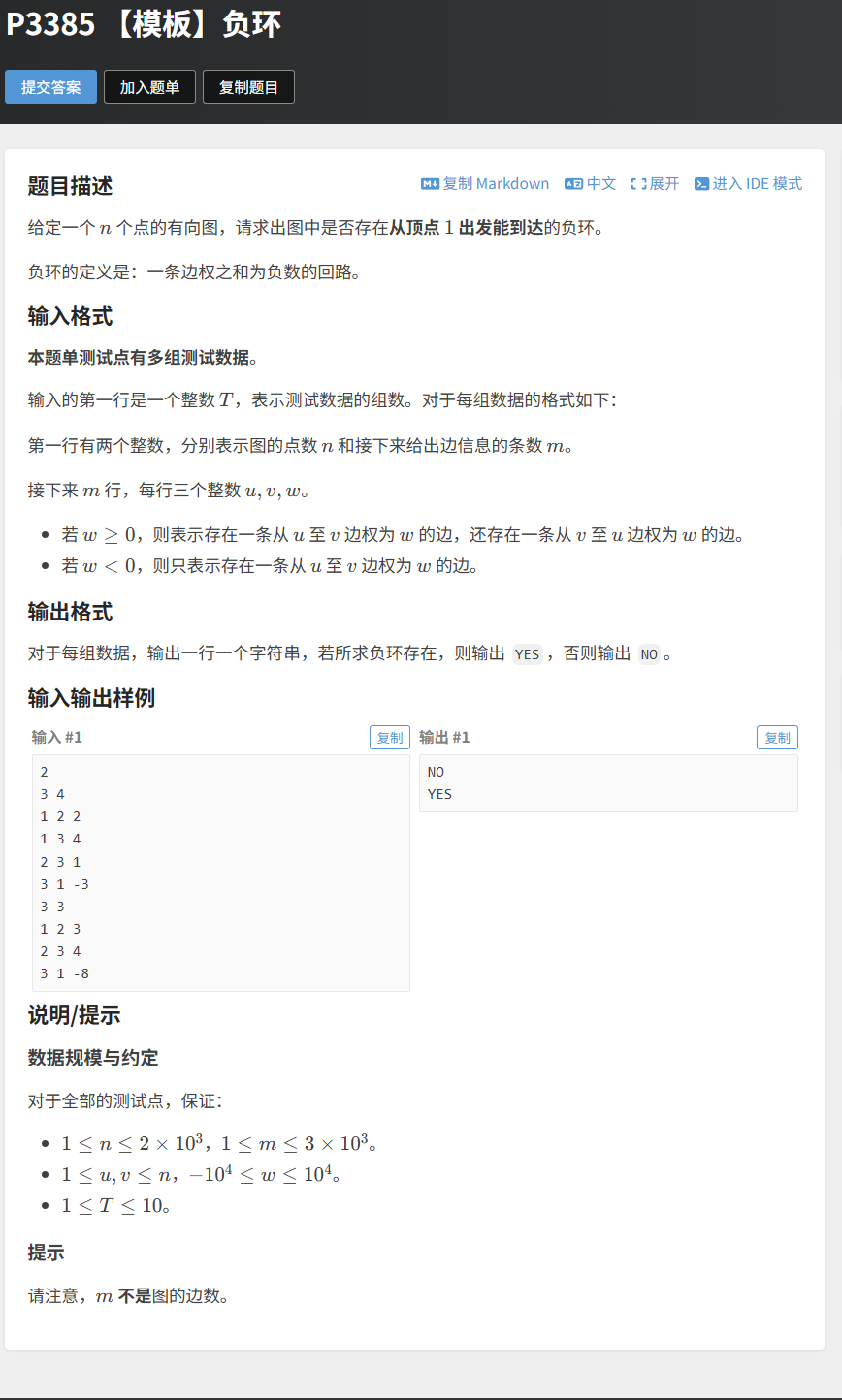 [题目链接:P3385 【模板】负环](#题目链接:P3385 【模板】负环)