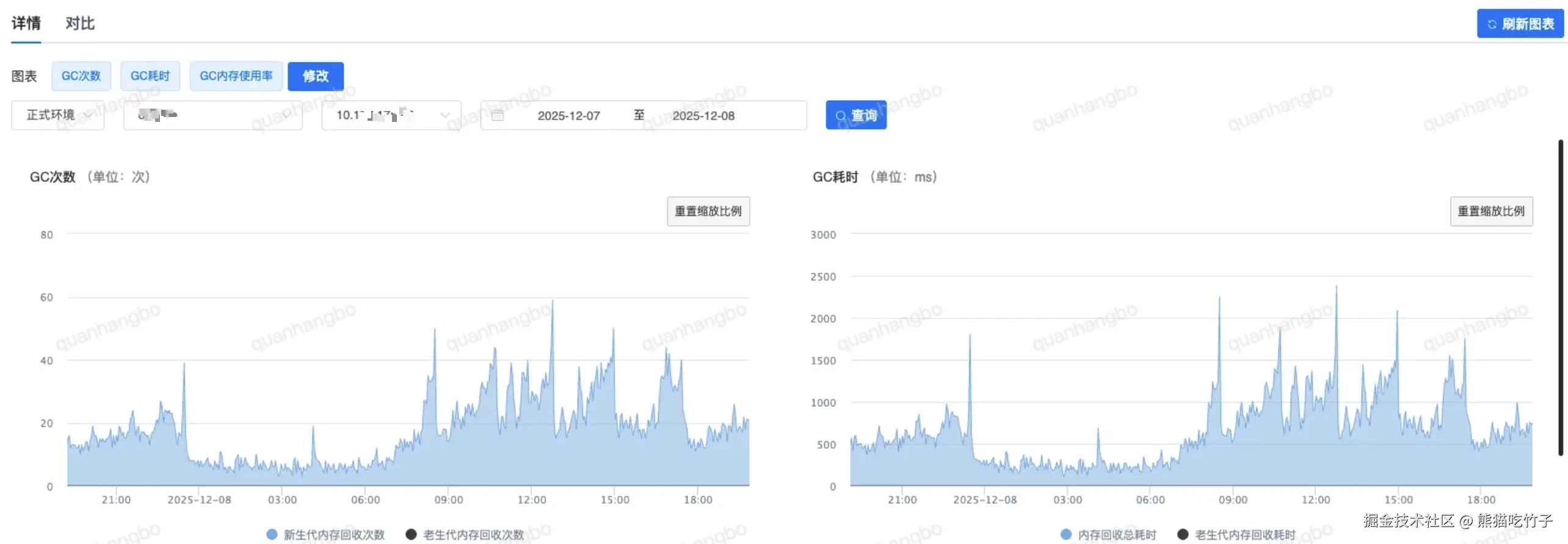 结论:站外机器的GC次数下降,整体也呈现下降趋势(约下降5ms左右)