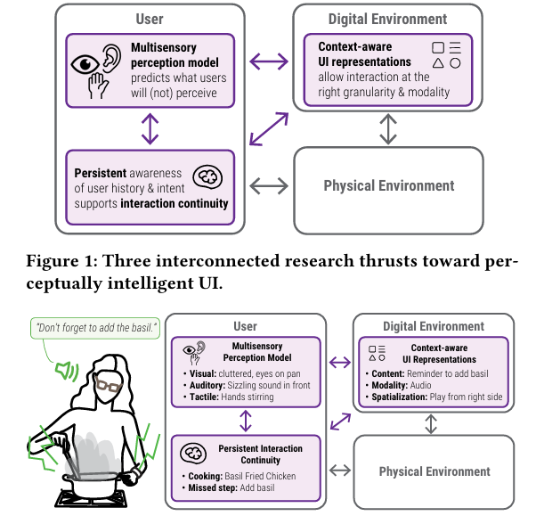 图 1 提出了实现感知智能 UI 的三个核心研究方向(Thrusts):