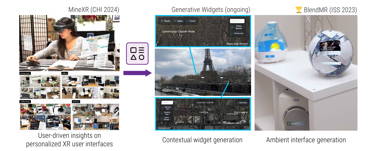 - 原子化功能拆解 (MineXR): 研究发现用户更需要"特定任务的功能组",而非完整的 App。研究者将应用分解为原子化的组件(Widgets)。