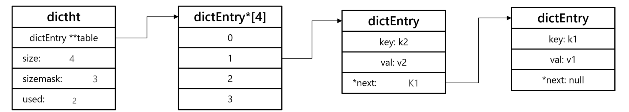 基于类似点,所以Hash底层采用的编码与Zset大致相同,不过由于Hash并不需要做排序,所以不需要维护SkipList,所以对应的编码修改为 OBJ_ENCODING_HT。所以与Zset相同Hash结构默认采用ZipList编码,以节省内存。ZipList中的两个Entry分别保存field和value,当数据量较大的时候,Hash结构会转化为HT编码,对应Dict,对应决定的变量为: