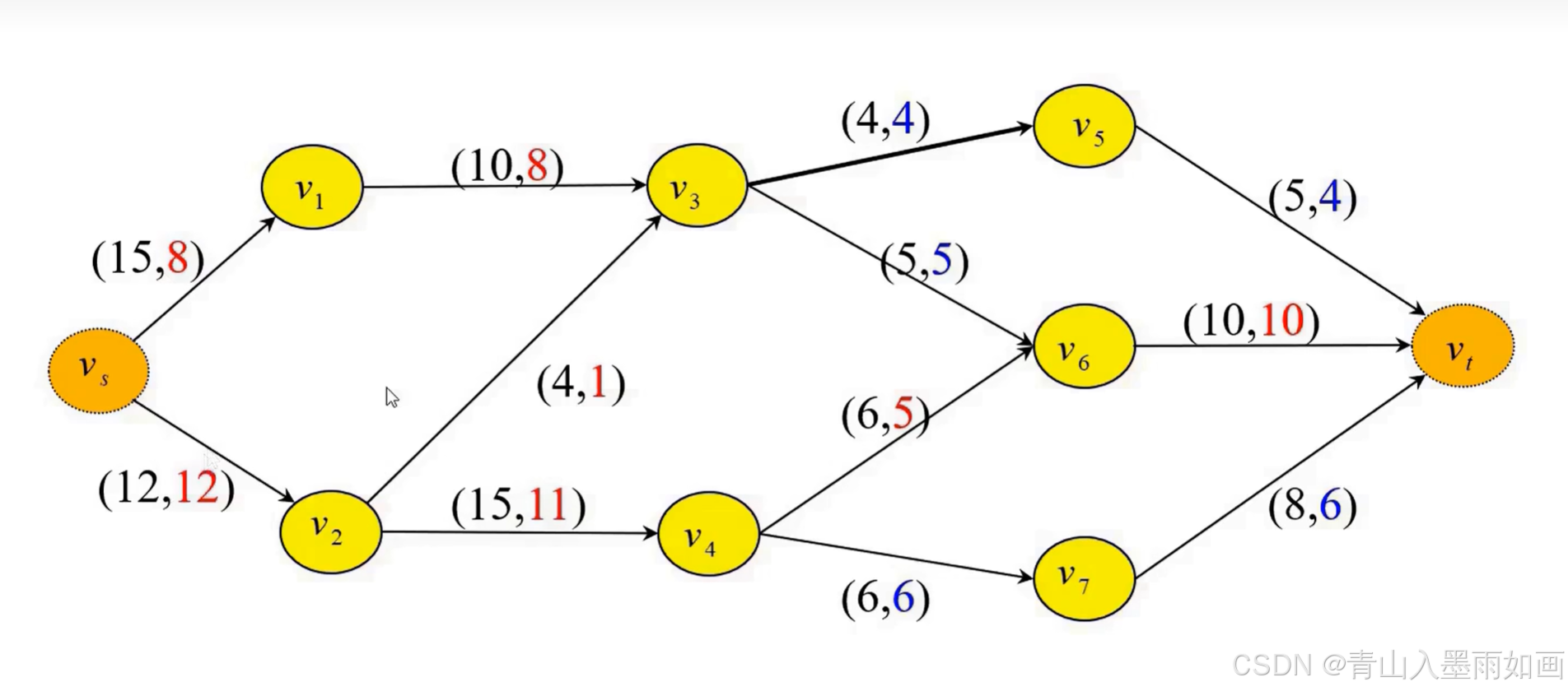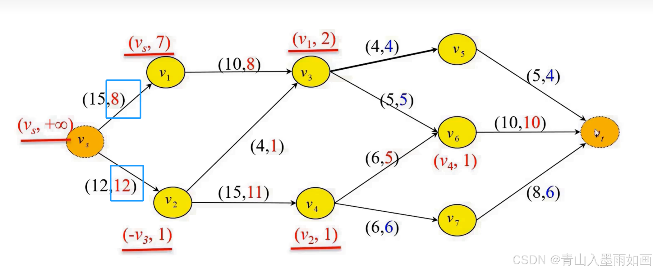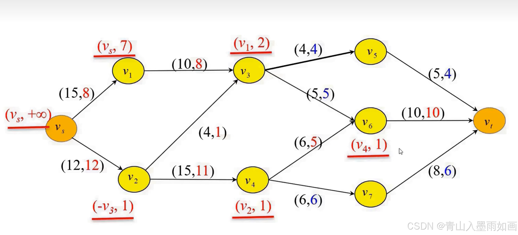 (max_stream,available_stream)<==>(弧容量,当前弧流量)