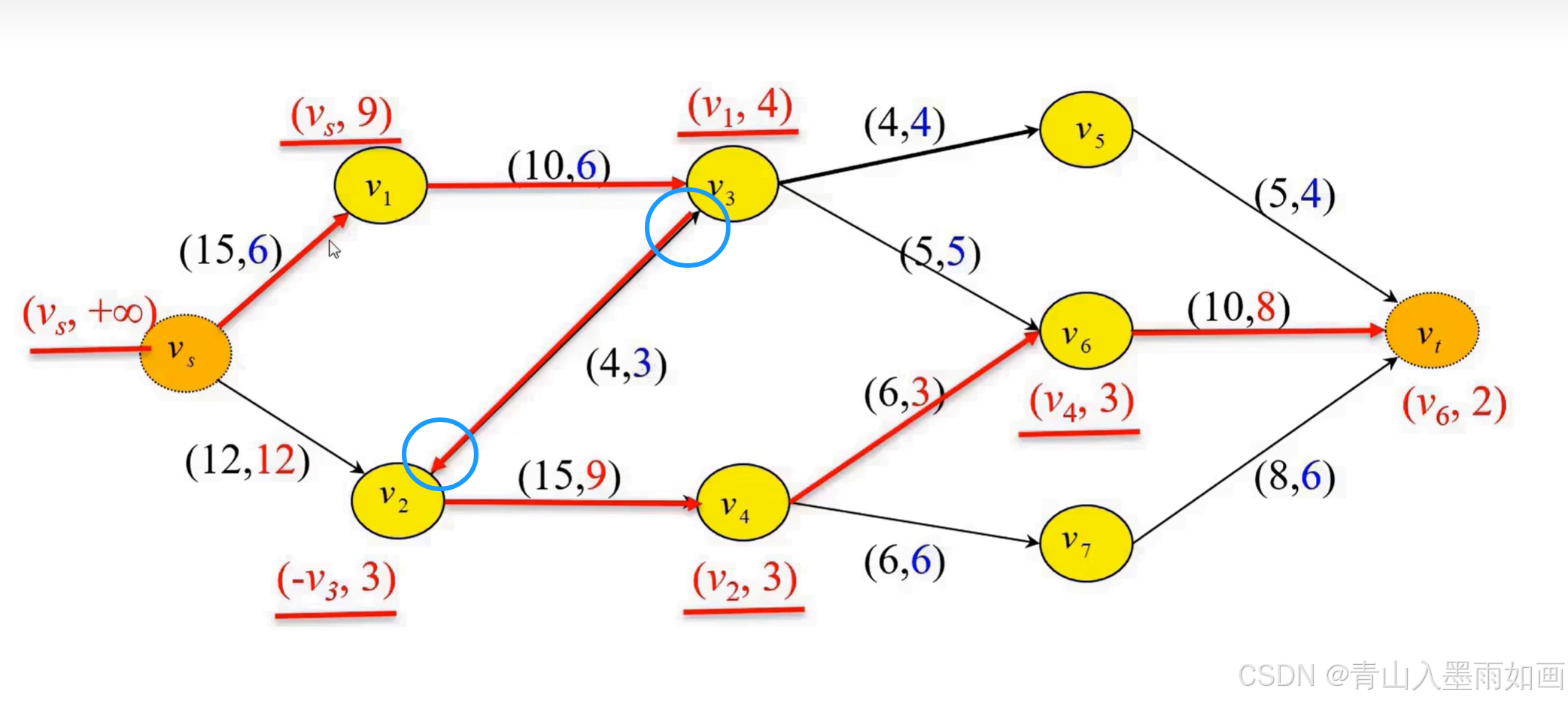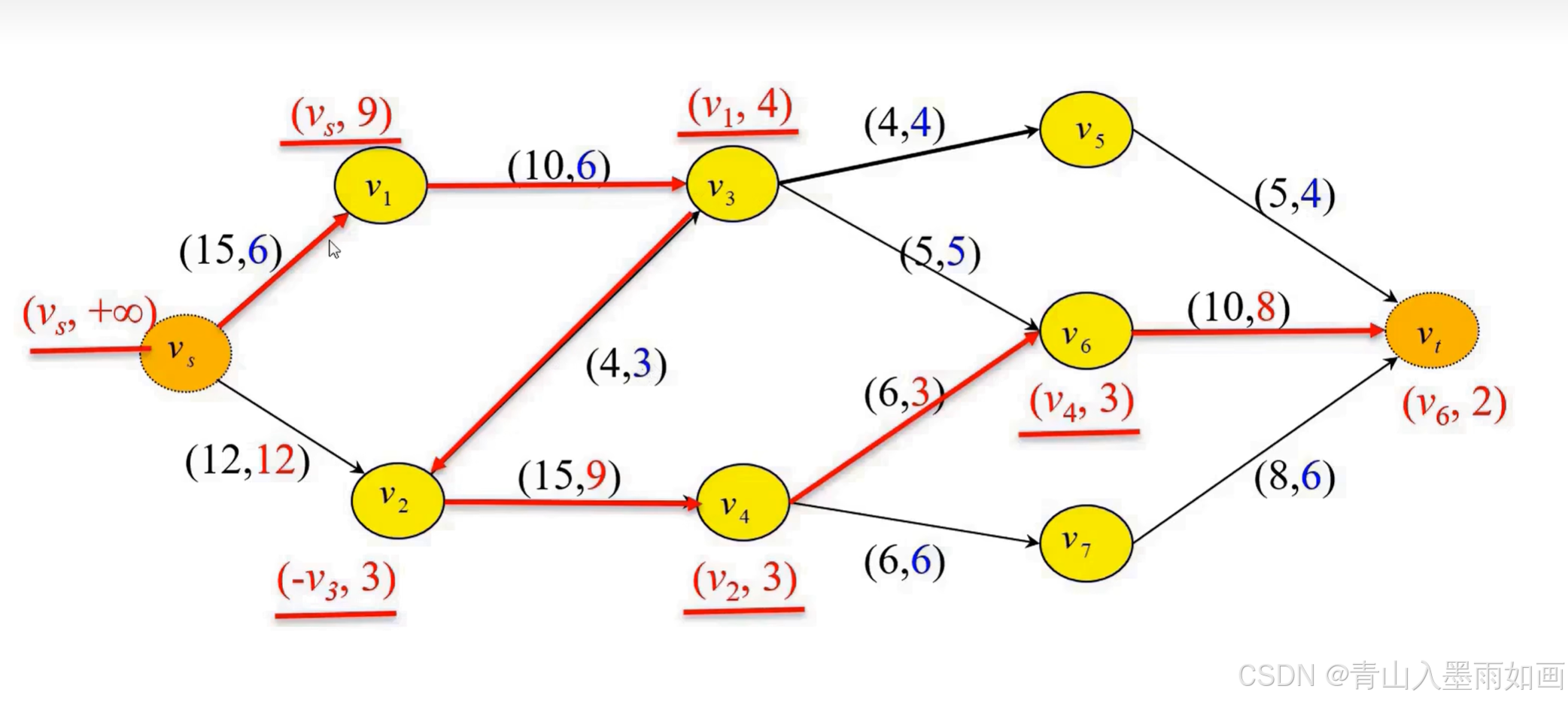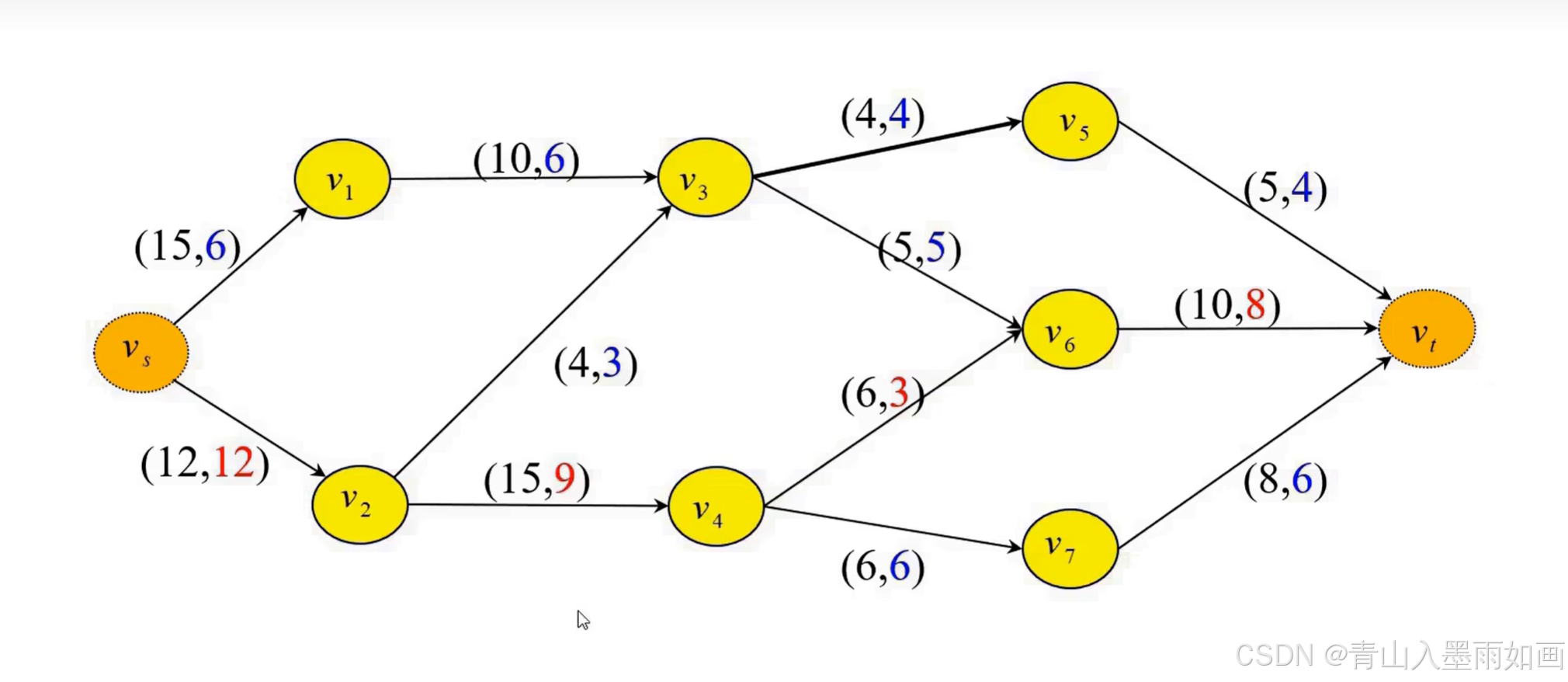 (max_stream,available_stream)<==>(弧容量,当前弧流量)