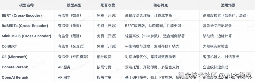 - 原理:使用模型对每个检索结果计算相关性分数。