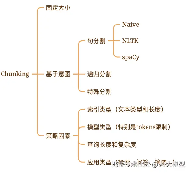 - Lang Chain框架:提供多种分块策略,包括RecursiveCharacterTextSplitter、MarkdownTextSplitter等