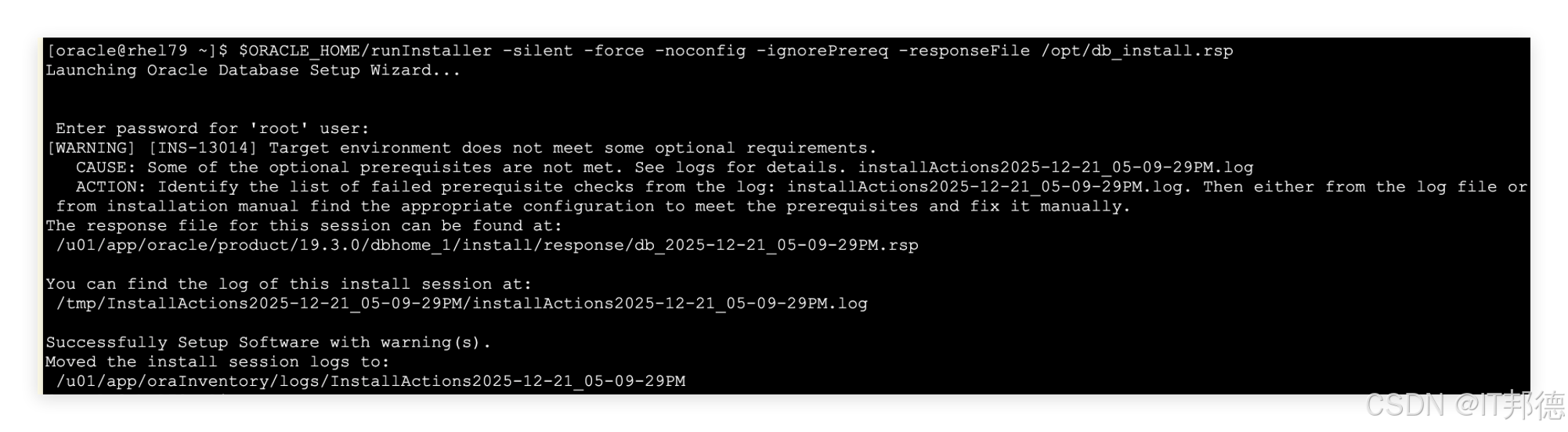$ORACLE_HOME/runInstaller -silent -force -noconfig -ignorePrereq -responseFile /opt/db_install.rsp