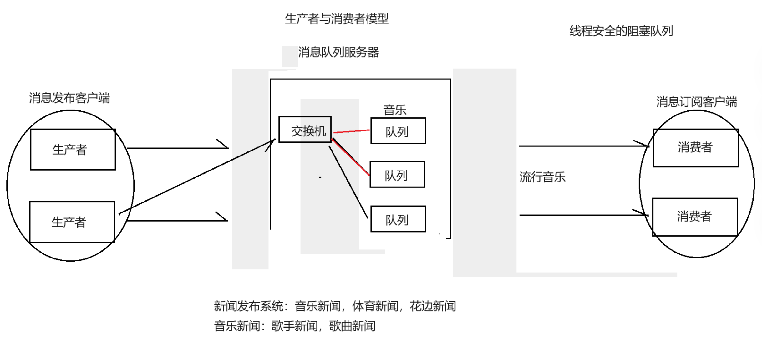 - 队列 (Queue): 真正用来存储消息的部分, 每个消费者决定自己从哪个 Queue 上 读取消息