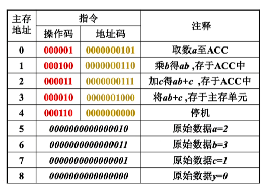 这段程序经过编译之后,以机器指令的形式装载进如下图的主存。