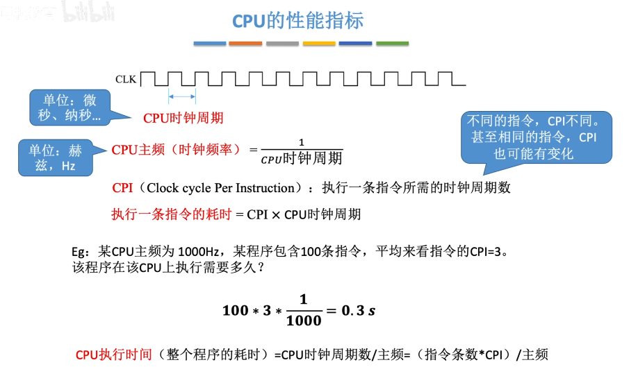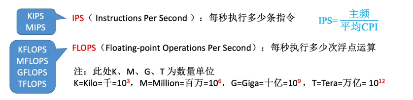 (3)CPI:即执行一条指令所需的时钟周期数。不同的指令,CPI不同。相同的指令,CPI也可能发生变化。