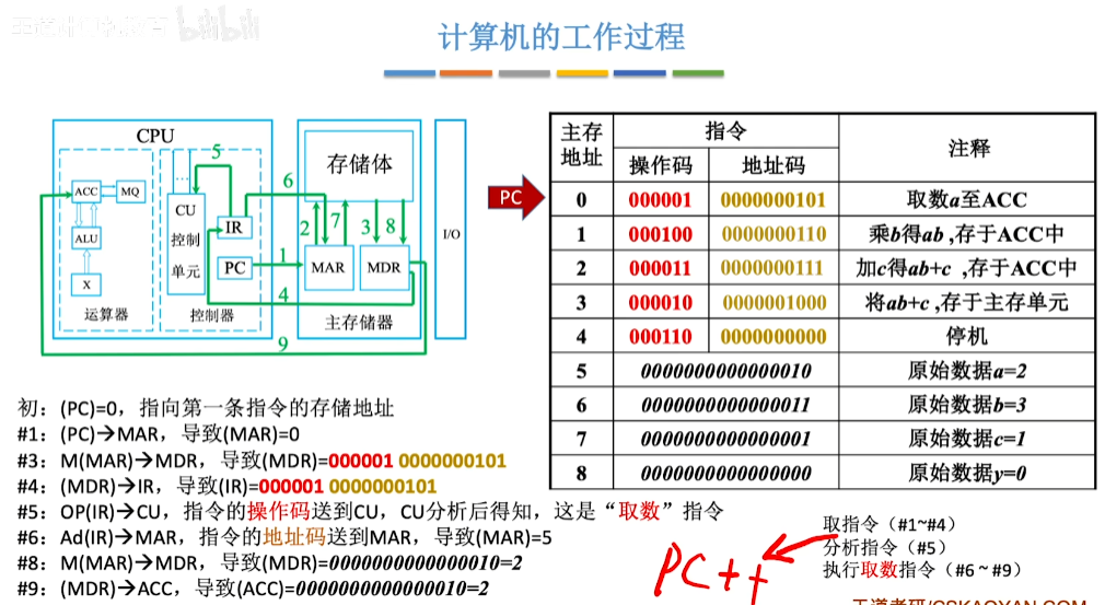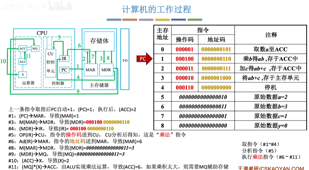 注意:CPU向主存储器里进行读写操作时,一般都是先给MAR,再给CU,MDR会等待操作以后才进行数据读写。