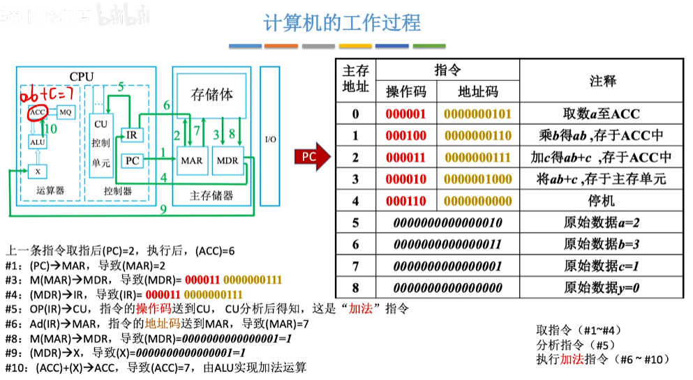 这里以执行下面这段程序为例,来展示计算机的工作过程。