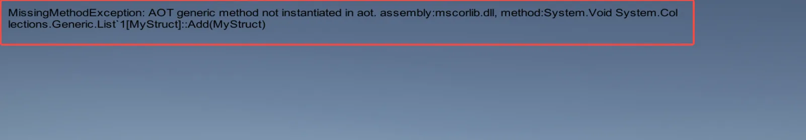 1、使用热更新代码中没有定义,并且AOT代码中没有实例化过的某个泛型类或者函数时,需要补充元数据dll