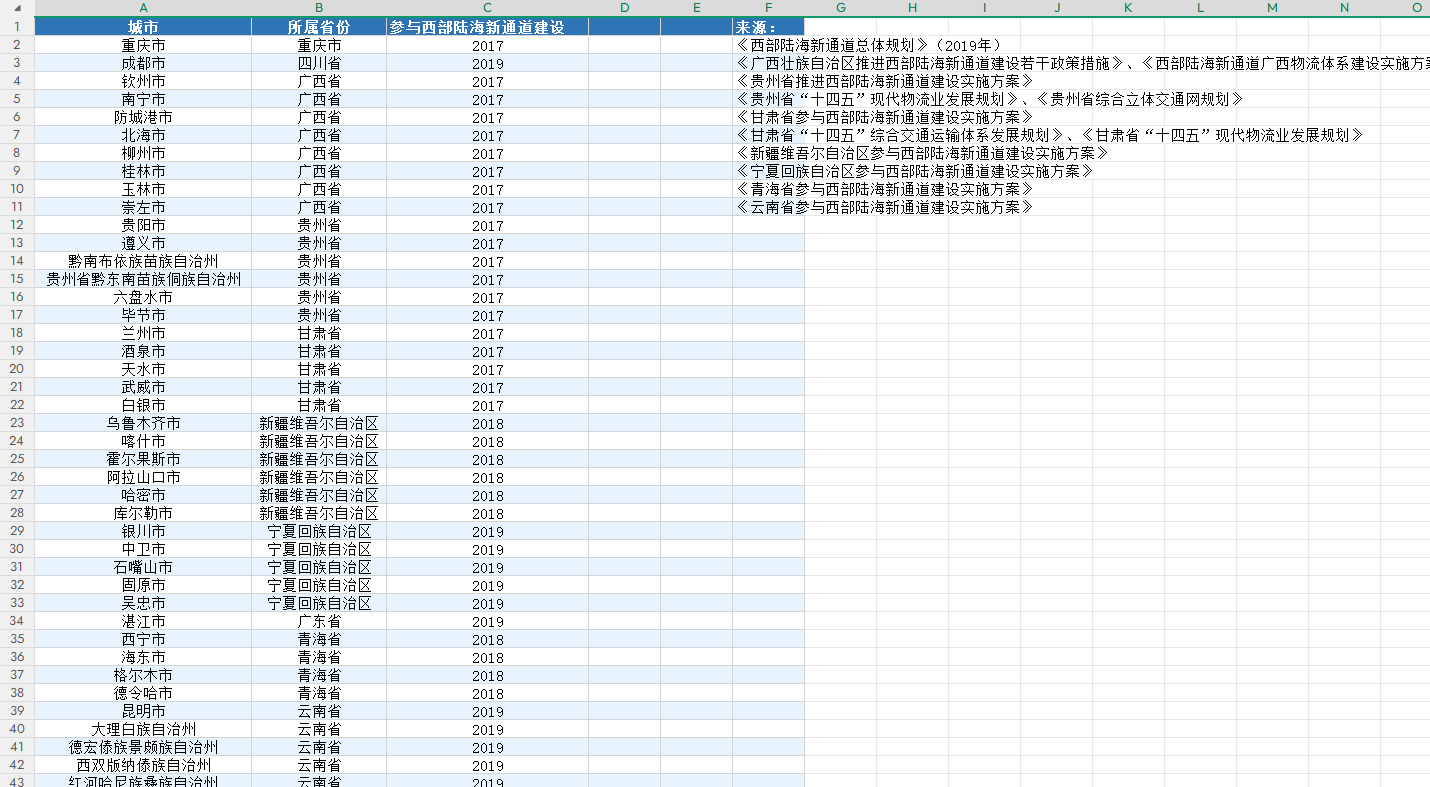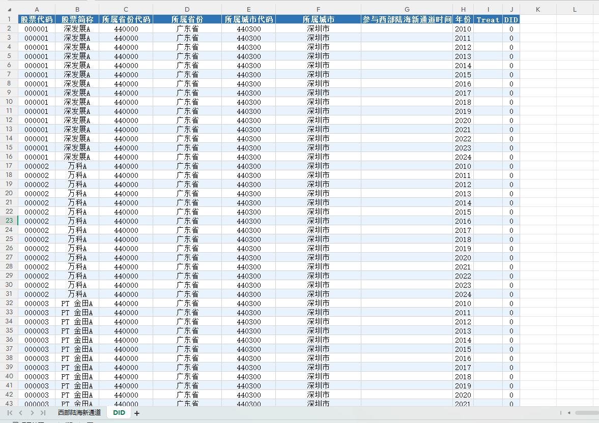 所属城市 参与西部陆海新通道时间 年份 Treat DID