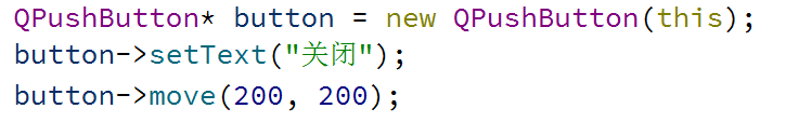 - 首先创建一个按钮控件,控件显示关闭字样,且将按钮位置从左上角移动到(200,200)的位置