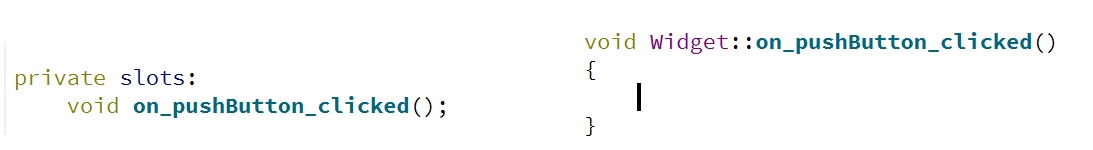 void Widget::on_pushButton_clicked():on:固定前缀,pushButton这个就是我们图形化创建的按钮的名字,clicked:就是信号的名字(将pushButton这个控件的clicked信号和当前这个函数建立连接)