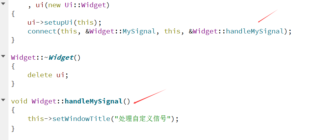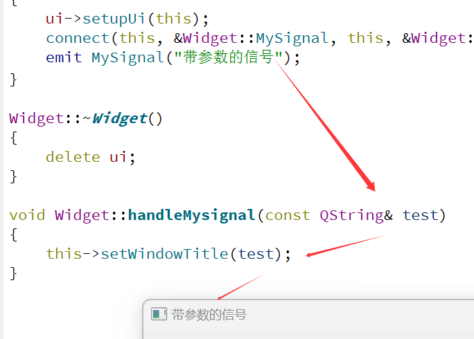 emit MySiganl();emit MySiganl(),信号的发射不一定要在构造函数中,可以通过实际要求写在合适的函数中(比如按下按钮之后,改变窗口标题,那么这个发射信号就写在按钮的槽函数中,当触发按钮点击的信号时,就会发射自定义信号,从而达到效果)