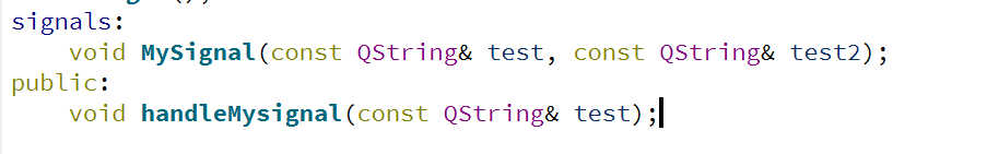 - 信号函数用 signals关键字修饰,槽函数用public slots、protected slots或者private slots 修饰。signals和slots是Qt在C++的基础上扩展的关键字,专门用来指明信号函数和槽函数;