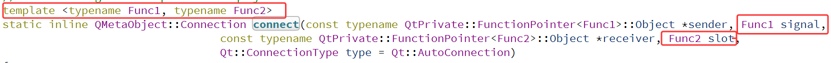 - connect函数声明是以前旧版本的函数声明,以前版本传参的写法和现在写法也不同,需要给信号参数搭配一个SIGNAL宏,给槽参数搭配一个SLOT宏。这个宏就能将传入的函数指针转换成char*
