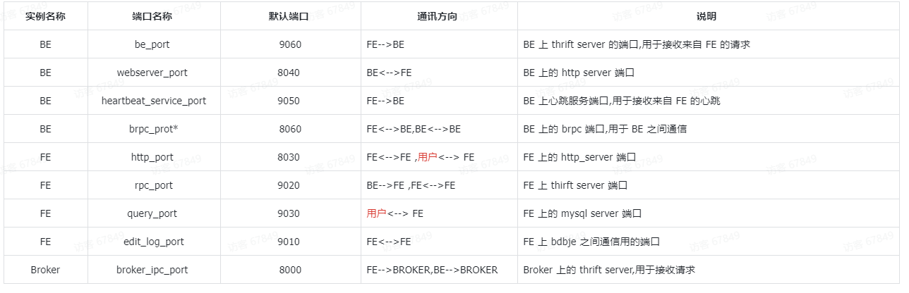 - Frontend (FE): 主要负责接收用户请求、查询解析和规划、元数据管理以及节点管理。