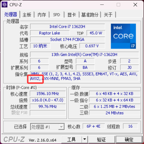 可以使用 cpu 工具查看,cpu 知否支持 avx2 指令集:
