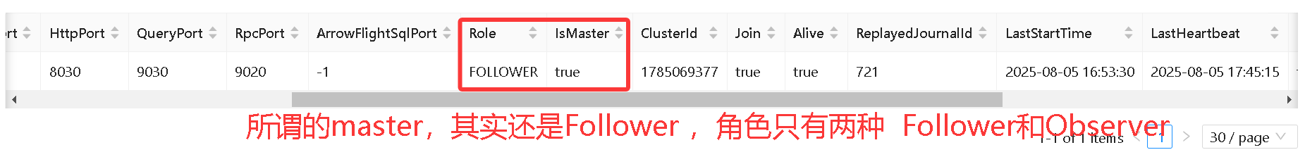 | Master | FE Master 节点负责元数据的读写。当 Master 节点的元数据发生变更后,会通过 BDB JE 协议同步给 Follower 或 Observer 节点。 |