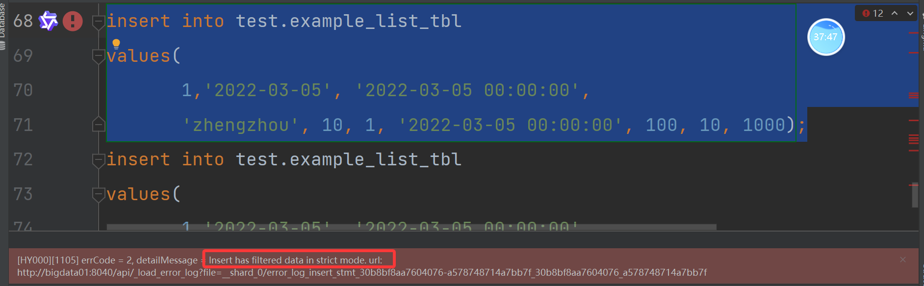 在导入数据时,单次导入作业的每个批次会被随机写入到一个 tablet 中,以此保证数据的均匀分布。例如,在一次操作中,8 个批次的数据被随机分配到 p250102 分区下的 3 个分桶中。